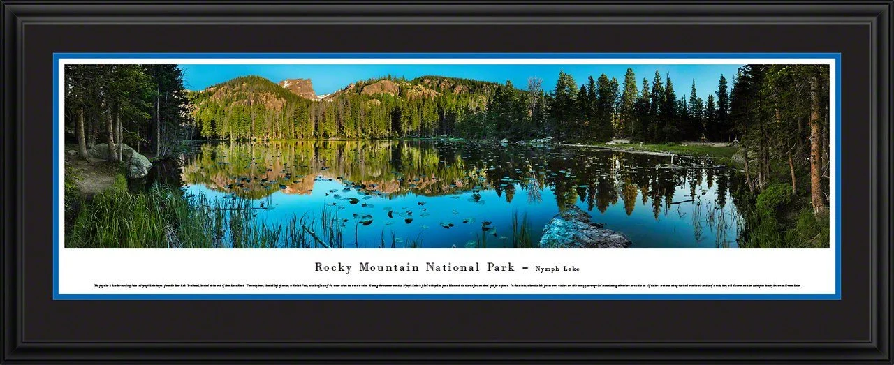 Double matted, with complimentary colors using acid free mats, finished with plexi in a black wood frame. Finished size is 44.5 x 17.5"