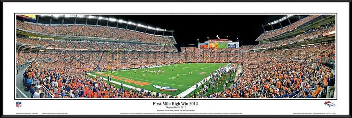 Double matted, with team colors using acid free mats, finished with plexi in a black wood frame. Finished size is 44.5 x 17.5