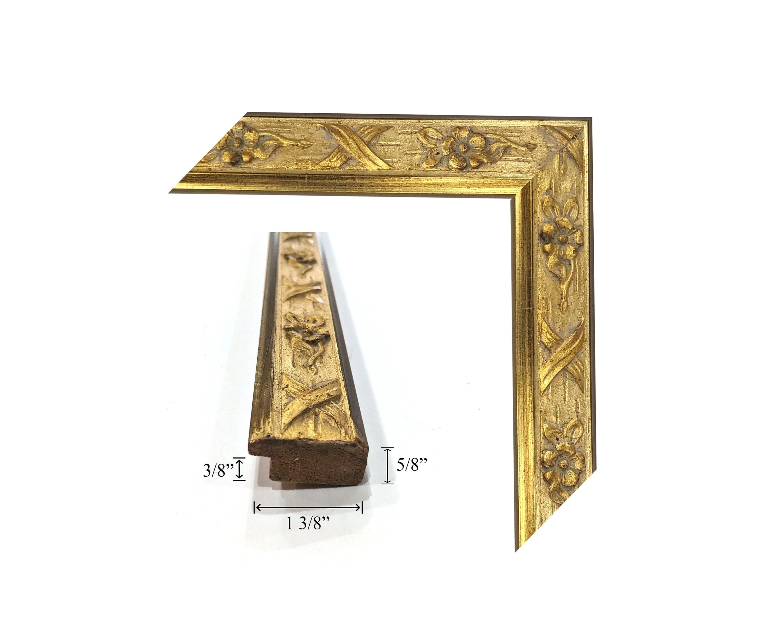 Custom Picture Frame | 1 1/2"W 1 1/4"H 1/2"R Gold with Waves | Great for Photos, Art 3414