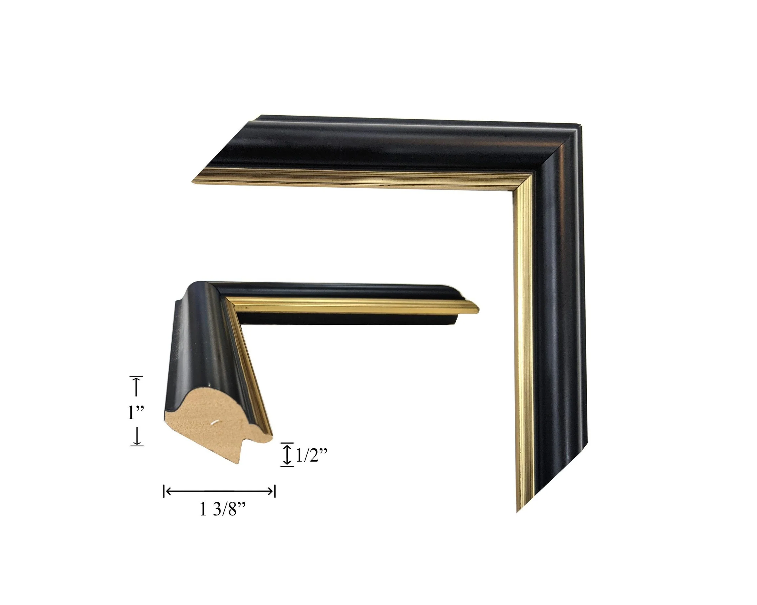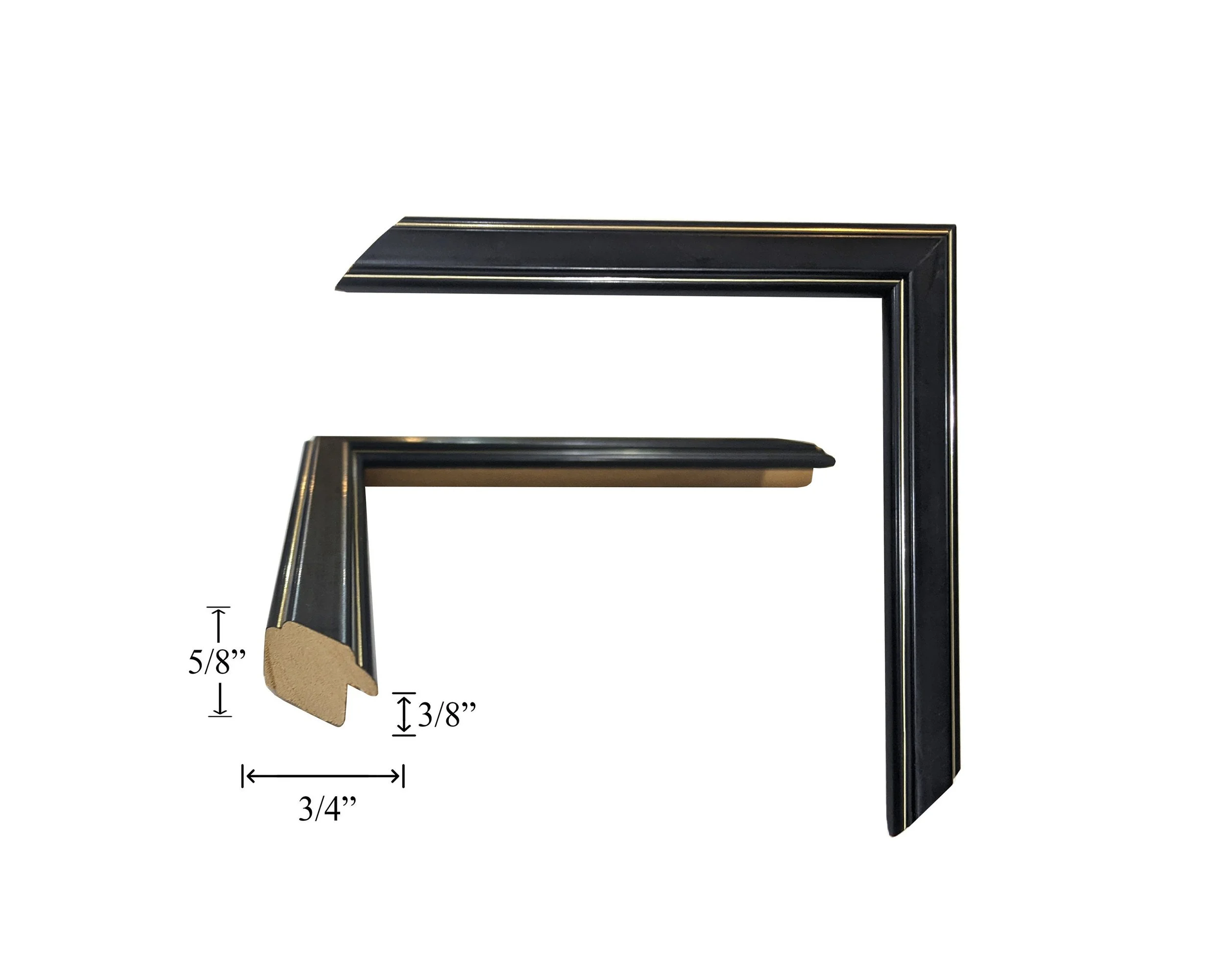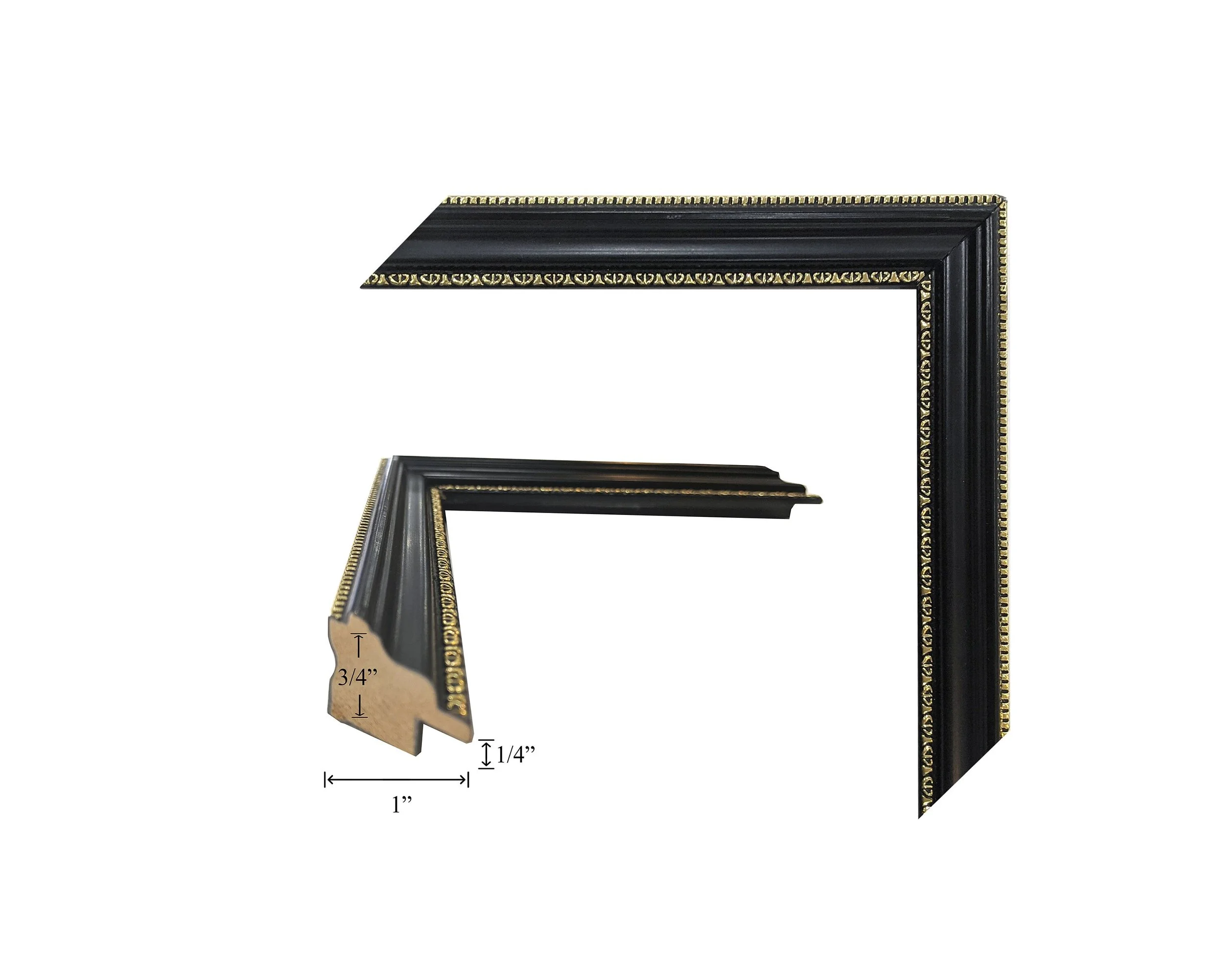 Custom Picture Frame | 1 7/8W Black Laquer with White Detail | Custom Size Framing Great For Art, Photos, Diplomas, Wall Decor (253)