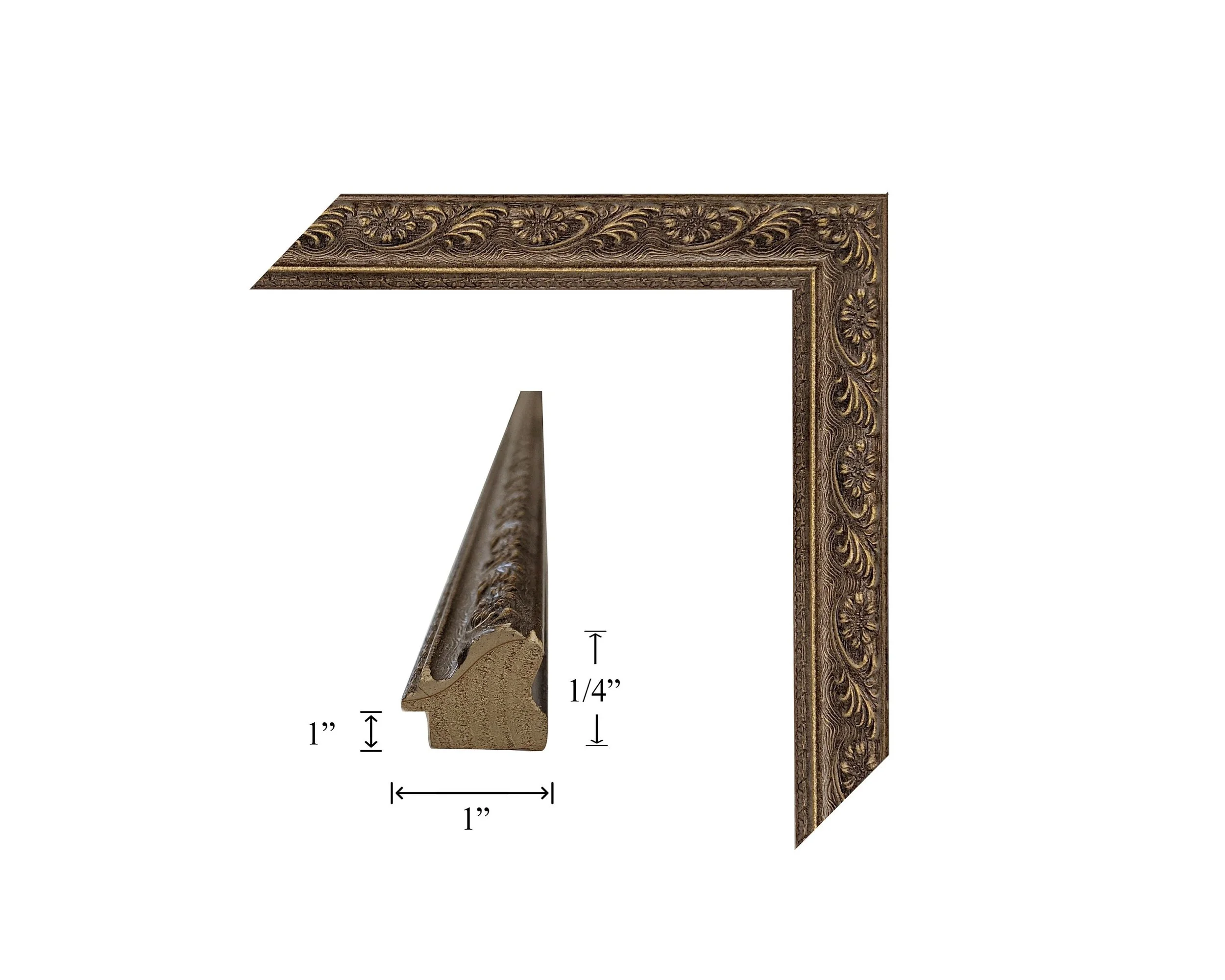 Custom Picture Frame | Dark Gold Speckled With Ornate Braided Trim 3 1/4"H x 1 1/4"W x 1/2"R| Great for Artwork, Photos, Collages (4636)
