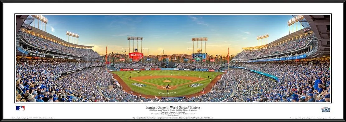 Los Angeles Dodgers - Longest World Series Game In History - Dodger Stadium | Custom Framed | MLB Panoramic